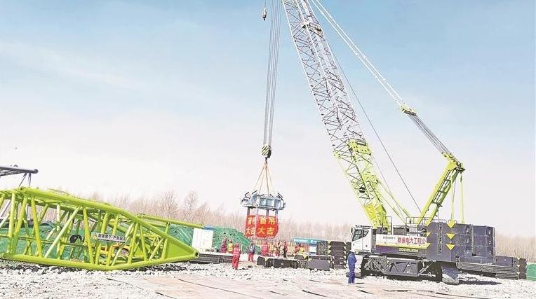 项目建设进行时|大庆油田林甸风光发电项目二期首台风机成功吊装