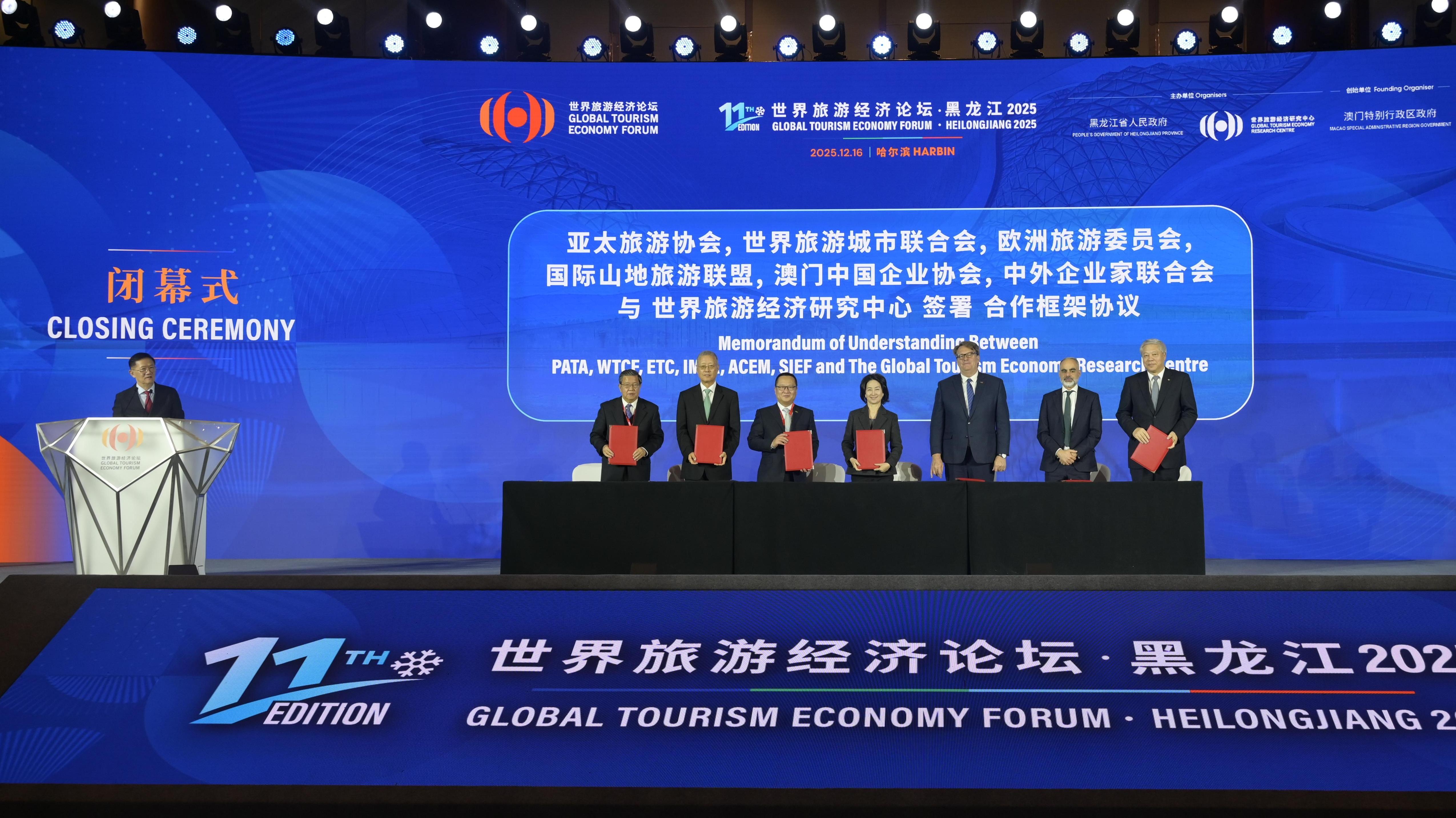 12월 16일, '세계관광경제포럼·흑룡강2025'가 할빈에서 성황리에 막을 내렸다. 이번 포럼은 '신질생산력: 세계 관광경제의 새 엔진'을 주제로 문화와 관광의 융합 및 글로벌 협력에 초점을 맞추어 흑룡강성성의 '한계절열기'에서 '사계절열기'로의 관광경제 전환성과를 성공적으로 보여주었다. 페막식에서 유엔관광기구 류사군 사무총장은 축사를 통해 포럼의 성공적 개최를 뜨겁게 축하하며 흑룡강성과 할빈시의 세심한 준비와 조직에 진심어린 감사를 표했다. 그는 이번 포럼이 글로벌 경제와 관광업 전환 발전의 핵심과제를 집중적으로 다루었으며 인공지능기술, 교류협력, 산업혁신 등 주제를 깊이 있게 론의함으로써 관광업이 경제 성장, 구조적 고도화 및 지속가능한 발전을 추진하는데 중요한 역할을 하고 있음을 충분히 보여주었다고 지적했다.